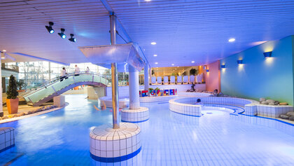 Wellen- und Erlebnisbecken sind über einen Kanal verbunden. Testen Sie Ihre Kräfte im bärenstarken Strömungskanal oder lassen Sie sich mit dem Strom treiben. Düsen, Sprudel und der Wasserfall sorgen hier puren Badespaß!
